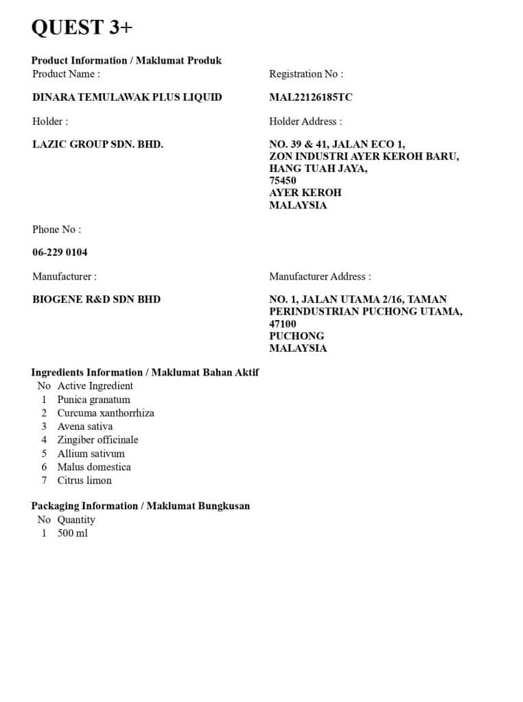 Dinara ini dirumus khas dengan bahan semulajadi dan tak de langsung bahan kimia yang terlarang. Dijamin selamat dengan Kelulusan KKM. Alhamdullilah setakat ini memang tak ada feedback negatif dari pelanggan tentang sebarang masalah komplikasi semasa amalkan Dinara.